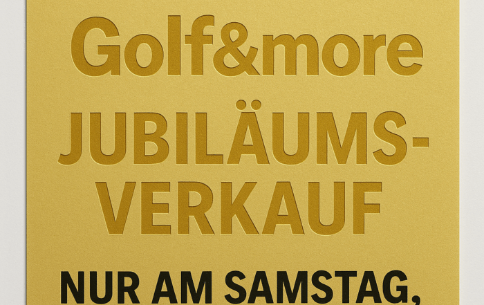 24 Jahre Golf&more Jubiläumsverkauf im Golfshop 20 % Rabatt auf alles...außer Handschuhe Nur am Samstag, 23. August 2025 ...gilt nicht auf bereits reduzierte Ware…