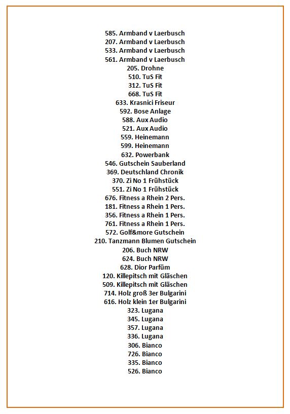 Die Tombola-Preise können gegen Vorlage der passenden Losnummer bis zum 20.08.2017 im Clubhaus abgeholt werden.