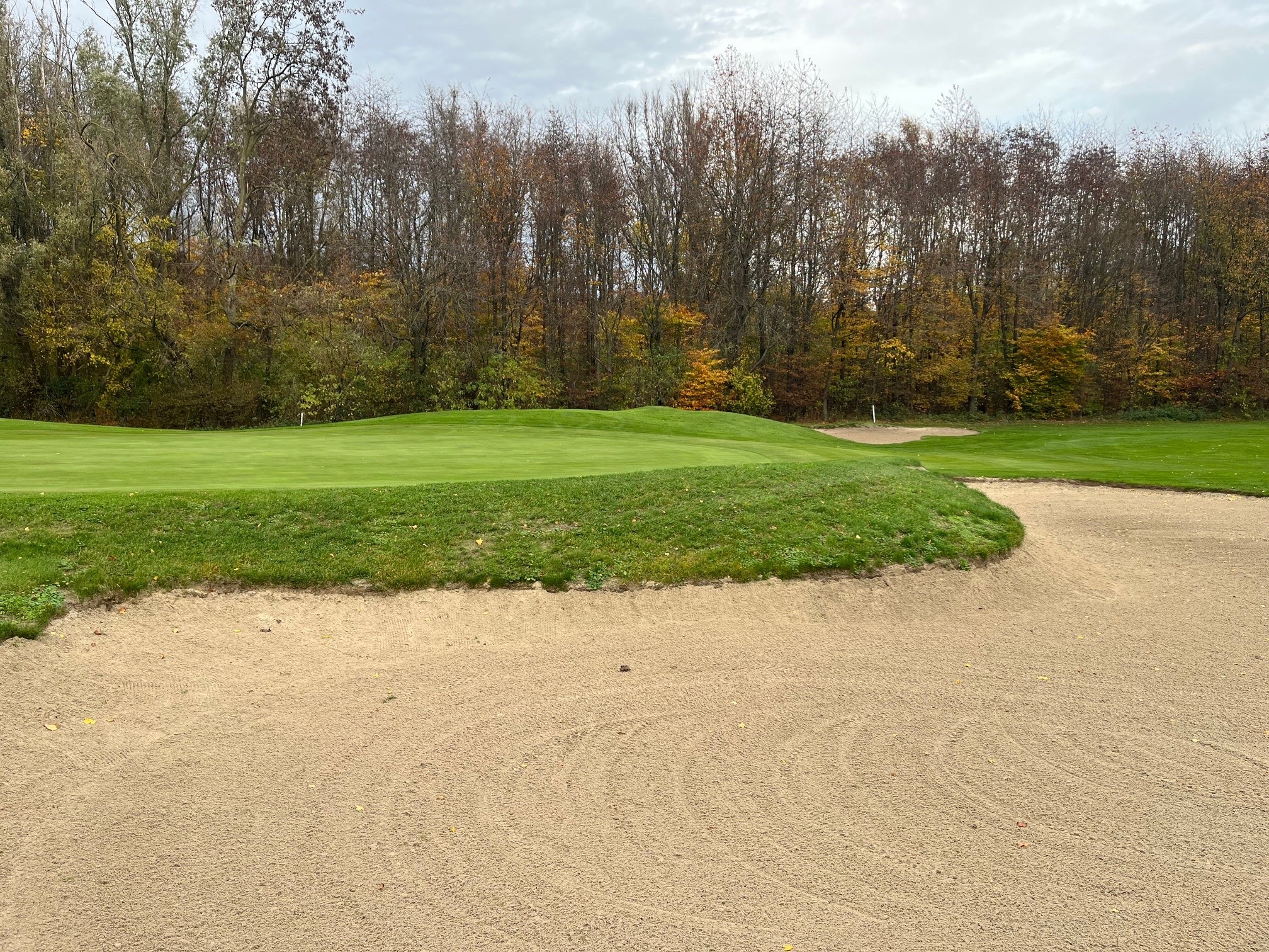 da das abschließende Par 3 auf dem Südplatz aufgrund der Nässe umgebaut werden muss, spielen wir ab Montag als letztes Loch das ehemalige Par 4 des Nordplatzes.